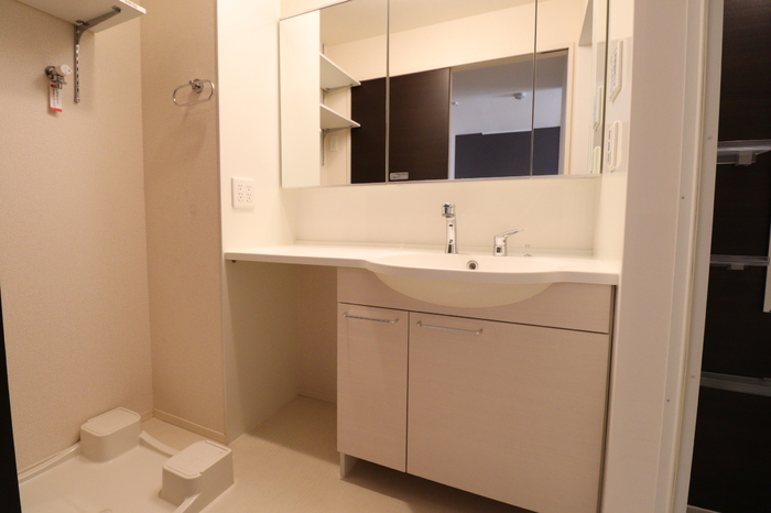 小田急電鉄「向ヶ丘遊園駅」徒歩7分、JR南武線「登戸駅」徒歩12分の物件です!!オートロック付き物件!3口ガスコンログリル付きのシステムキッチン!3面鏡のカウンタータイプの洗面室です♪映像や雑誌が楽し